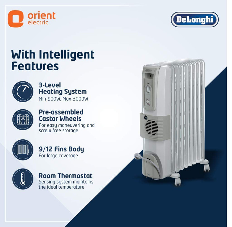 استفاده از رادیاتورهای برقی یا شوفاژ برقی جهت تامین گرمای دلخواه به دلیل اطمینان بسیار بالا و بدون صدا بودن عملکرد رادیاتور برقی یکی از محبوب ترین و مورد علاقه ترین انتخاب های مصرف کنندگان سیستمهای گرمایش تکمیلی ساختمان می باشد همچنین از دیگر مزایای تمامی رادیاتورها یا شوفاژهای برقی از جمله رادیاتور برقی قابلیت جابجایی آنها با استفاده از چرخ های تعبیه شده در محل فضایی است که در آن قرار داده شده است و شرکت معتبر دلونگی یکی از پیشتازان در این حوزه میباشد که با تولید محصولات با کیفیت سهم قابل توجهی دراین بازار را به خود اختصاص داده است.رادیاتور برقی دلونگی مدل H770925 با دارا بودن 9 پره برای پوشش دهی فضای 60 متر مکعب مناسب می باشد این رادیاتور بدلیل داشتن ترموستات ایمنی اتاقی، قابلیت تنظیم دما را در 7 درجه متفاوت دارا می باشد. رادیاتور برقی دلونگی مدل H77925 دارای حداکثر توان گرمایشی 2000 وات هستند و با ولتاژ برق ورودی 220 ولت کار می کنند