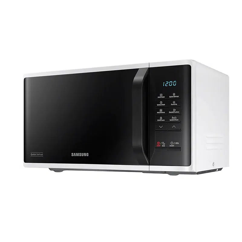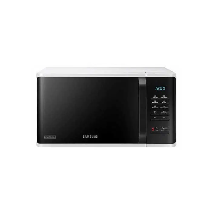 مایکروویو سامسونگ 23 لیتری مدل MS23K3513AW دارای رنگ مشکی و سفید بوده که قطعات و موتور آن ساخت کره و مونتاژ مالزی است. این دستگاه مجهز به قابلیت های آسان و سالم، صرفه جویی در مصرف انرژی، قفل کودک، LED، پوشش داخلی سرامیکی، هیتر سرخ کن و … می باشد.
