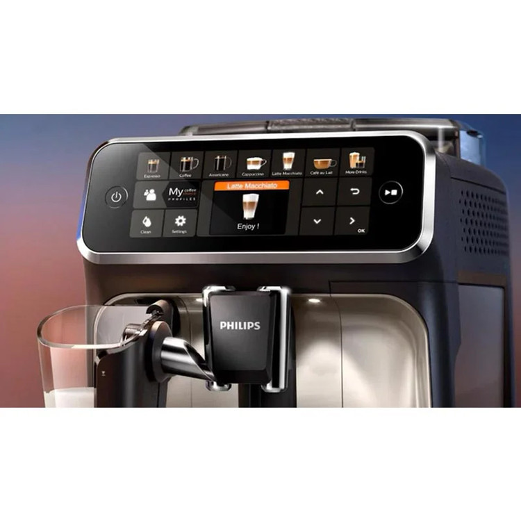 به لطف صفحه نمایش لمسی مدرن با نمادهای رنگی، نوشیدنی های مورد علاقه خود را به راحتی انتخاب کنید. با عملکرد My Coffee Choice قهوه خود را به دلخواه خود سفارشی کنید: قدرت قهوه مورد علاقه خود، طول و سطح کف شیر را کاملاً مطابق با سلیقه خود انتخاب کنید.