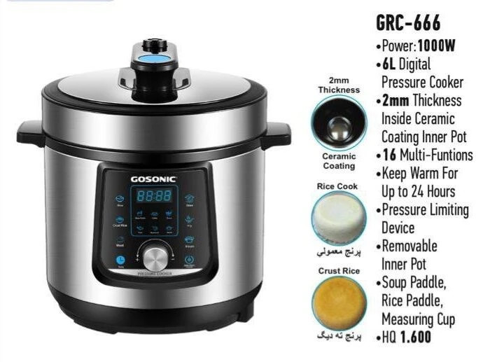 زودپز برقی 6 لیتری گوسونیک مدل GRC-666 ارسال تهران پیک