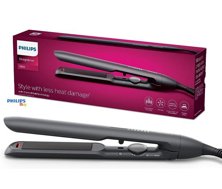 اتو مو فیلیپس مدل BHS۵۱۰، با صفحات متوسط از جنس سرامیک تورمالین، دارای سیستم یونساز، سیم گردان، تکنولوژی ترمو، گستره دما ۲۲۰ تا ۲۴۰ درجه سانتیگراد، به همراه سیم ۲ متری