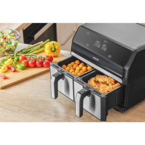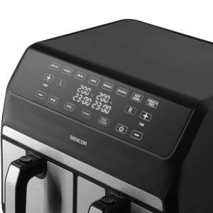 شما با استفاده از سرخ کن رژیمی سنکور 9500 میتوانید علاوه بر انتخاب برنامههای پیشفرض بالا، به صورت دستی نیز زمان و دمای دستگاه را انتخاب نمایید. این سرخ کن رژیمی قابلیت استفادهی جداگانه و همزمان از هر دو محفظه برای پخت غذا را دارا میباشد. شما میتوانید برای مثال در یکی از ظرفها سیب زمینی سرخ کنید و در دیگری گوشت و یا مرغ قرار دهید. زمان و دمای هر محفظه هم قابل تنظیم است و به صورت جداگانه از طریق پنل میتوانید دما و زمان مناسب را به سرخ کن بدهید تا به بهترین نحو، غذای خوشمزهی شما آماده شود.