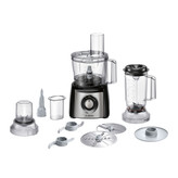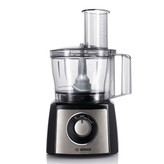 غذاساز بوش دارای 1 دیسک از جنس استیل برای رنده نمودن ، 1 دیسک برای ورقه نمودن مواد غذایی و 1 دیسک پلاستیکی برای همزدن تخم مرغ و به عمل آوردن خامه میباشد. بر روی پنل دستگاه یک ولوم چرخشی برای تنظیم سرعت در 2 درجه و همچنین عملکرد لحظه ای تعبیه شده است.