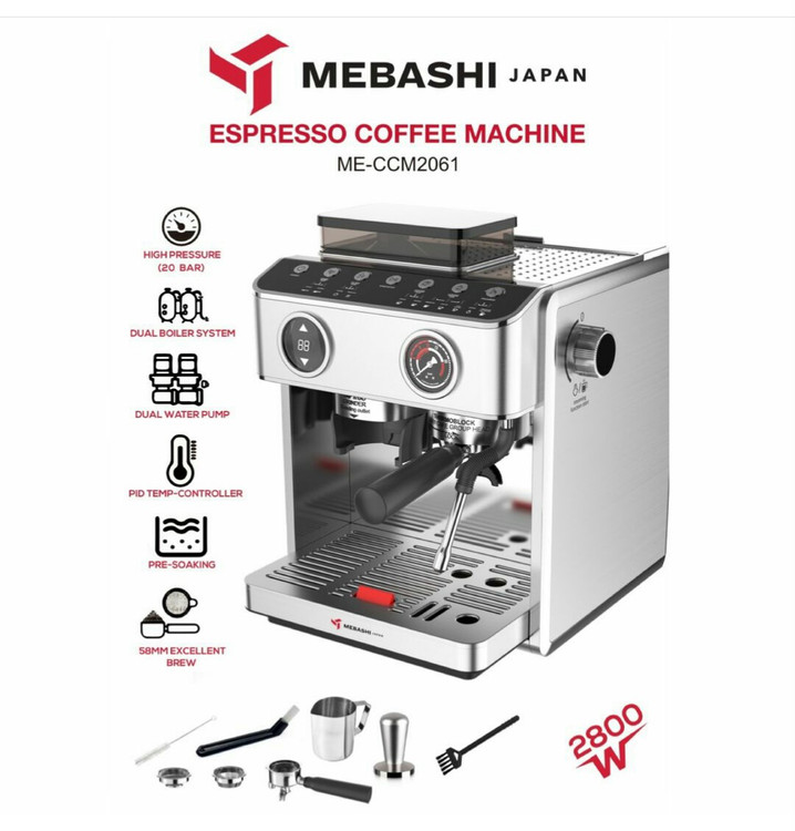 اقلام همراه: پرتافیلتر نیمه صنعتی سایز ۵۸، بسکت های غیر تحت فشار تک و دبل شات، پیچر استیل مباشی، تمپر تمام استیل مباشی، وسایل نظافت