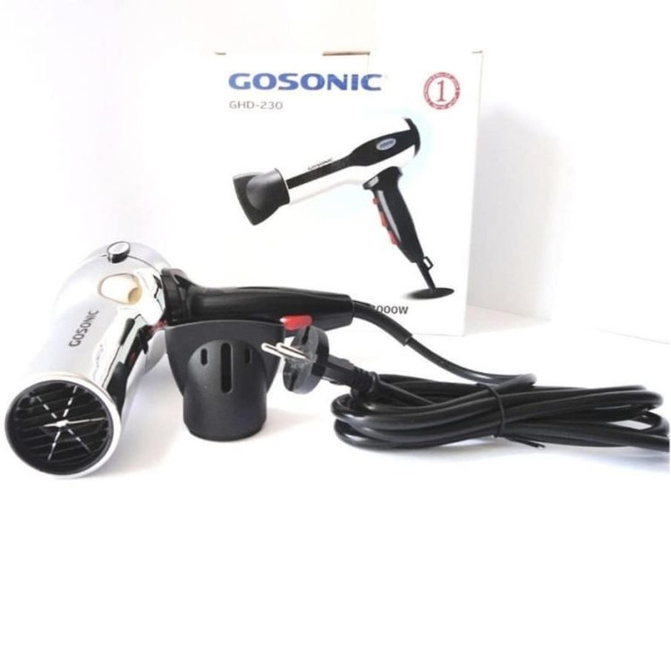 سشوار گوسونیک مدل GHD-230 دارای موتور بادوام و پرقدرتی از نوع AC است. این سشوار که 4 تنظیم مختلف دما/سرعت دارد، دارای توان 2000 واتی می باشد و با برق شهری 220 ولت کار میکند. فیلتر این سشوار جدا شدنی است و تمیزسازی آن بسیار آسان می باشد. بدنه این دستگاه از جنس استیل درخشنده است و طراحی دسته آن ارگونومیک بوده و از دست شما هنگام استفاده لیز نمیخورد. سشوار گوسونیک مدل GHD-230 دارای 1 سری اضافه برای متمرکز کردن باد سشوار است و دارای عملکرد باد سرد نیز می باشد.