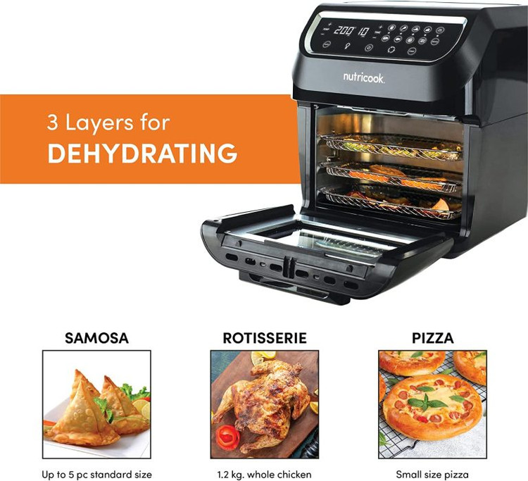 بدلیل طراحی آون مانند دستگاه و طبقات داخلی آن، شما همزمان میتوانید با ۲ یا ۳ طبقه ی در اختیار چندین غذا همزمان طبخ کنید