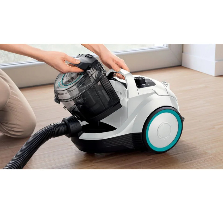 بدنه ای که جاروبرقی مخزن دار بوش از آن بهره مند شده است دارای طراحی زیباست. رنگ سفید بخش بیشتر آن را در بر گرفته و دارای بخش هایی با ترکیب رنگ مشکی و فیروزه ای می باشد. در مجموع ترکیب این رنگ ها باعث زیبا شدن بدنه جاروبرقی محزن دار بوش شده اند.