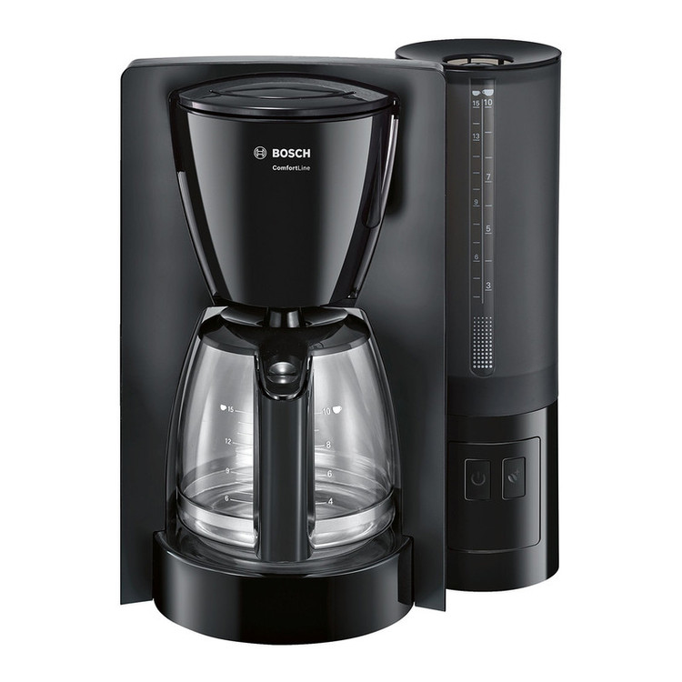 مخزن آب جدا شونده برای سهولت در پر کردن مخزن قهوه ساز بوش BOSCH مدل TKA6A043 با توان 1200 وات علاوه بر طراحی زیبای بدنه ، قابلیت تهیه قهوه با عطر و طعمی دلپذیر را دارد. مخزن آب قهوه ساز بوش 1.25 لیتر و به صورت مدرج بوده که به راحتی میتوان آن را جدا و پر نمود. مخزن قهوه دستگاه به صورت چرخشی باز و بسته شده و دارای فیلتر قابل تعویض میباشد. برای عطر و طعم بهتر و بیشتر قهوه در قهوه ساز 6A043 ، قابلیت Aroma+ اضافه گردیده است که تنها با فشردن این کلید میتوانید قهوه های خوش طعم تر نوش جان نمایید. با روشن نمودن قهوه ساز بوش آب داخل مخزن به جوش آمده و درون مخزن قهوه ریخته میشود و پس از ترکیب کامل با قهوه ، آماده شده و درون قوری شیشه ای قرار میگیرد. این دستگاه قابلیت خاموشی خودکار در 3 زمان 20 ، 40 و 60 دقیقه را دارد که با فشردن کلید power در 3 ، 5 و 7 ثانیه میتوانید زمان خاموشی خودکار را مشخص نمایید. تا پایان زمان خاموشی خودکار ، قهوه به صورت گرم نگهداری میشود. دهانه خروجی دستگاه به صورت ضد چکه بوده و هنگام جداسازی قوری از کثیف شدن سطوح جلوگیری می نماید. سیم قهوه ساز bosch قابلیت جمع آوری زیر دستگاه را دارد.
